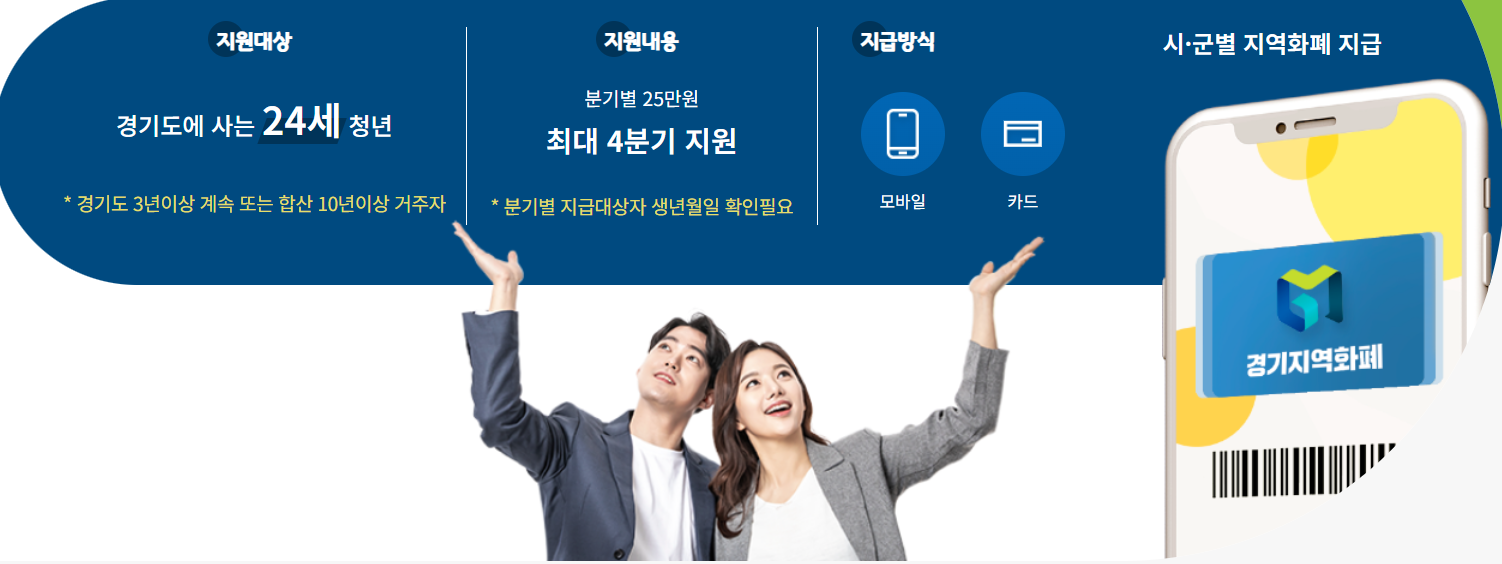 경기도에서 시행 중인 대표적인 청년지원금 제도는 경기도 청년기본소득입니다. 이는 말 그대로 ‘기본소득’ 성격을 갖는 제도로, 경기도에 거주하는 일정 연령의 청년에게 연간 100만 원(분기당 25만 원)을 지역화폐 형식으로 지급합니다. 단, 모든 청년이 대상이 되는 것은 아니며, 일정한 거주 기간과 연령 조건을 충족해야만 신청이 가능합니다.